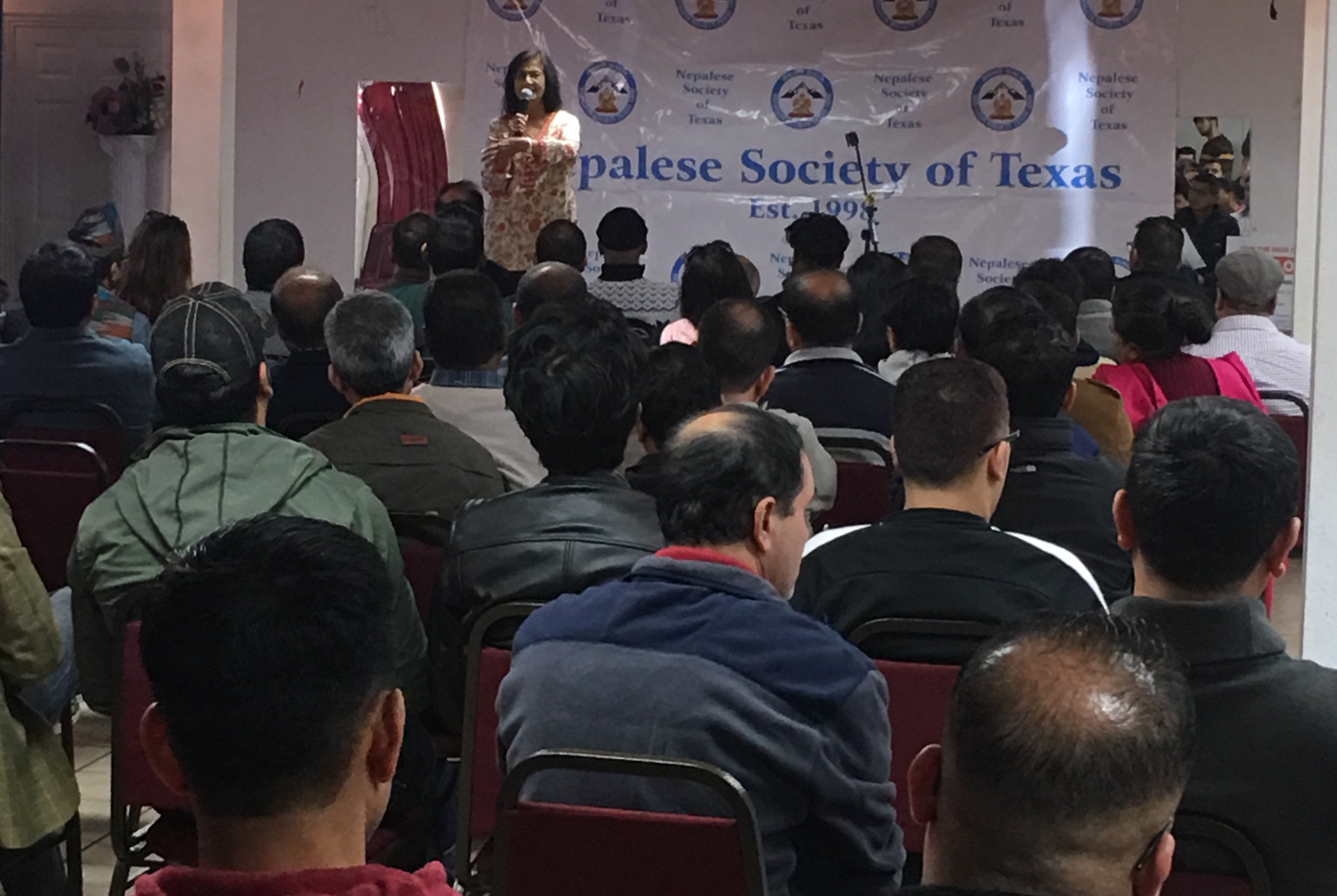 नेपाली समाज टेक्ससका अध्यक्ष दिनेश शर्माको सभापतित्वमा भएको कार्यक्रममा उपाध्यक्ष राजेन्द्र बाग्ले, महासचिव भानु खरेल लगायतले अमेरिकाका् जनगणनामा बढी भन्दा बढी नेपालीको सहभागिता हुनुपर्नेमा जोड दिएका थिए ।